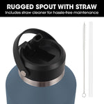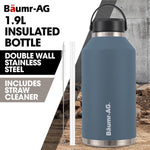 Baumr-AG 1.9L Double Wall Insulated Stainless Steel Water Bottle, Drink Jug with Handle, Straw Cleaner, Blue