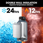 The double wall layers keep drinks cold for up to 24 hours or hot for 12 hours, no matter how tough the job.
