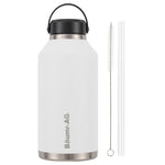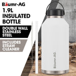 Baumr-AG 1.9L Double Wall Insulated Stainless Steel Water Bottle, Drink Jug with Handle, Straw Cleaner, White
