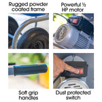 Designed for real job sites, the large 16” pneumatic tyres roll over rough terrain with ease, and the powder-coated steel frame is built to handle tough conditions.