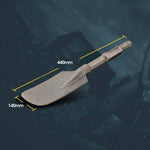 This extra-wide 140mm square-tip clay jack hammer bit turns your jackhammer into a powered mega spade! This type of gouge is best suited for hard soil that bends ordinary shovels - time to get your own ultimate jack hammer chisel bit! The full 140mm width and super thick spade base means you only ever need to buy one of these. Resharpen time after time with plenty of meat. A true contractor grade bit ready to provide years of digging pleasure!