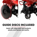 At a dry weight of 28kg the BT-889 Rototiller offers a sensible blend of power and manoeuvrability. Without the need for tools you can attach the supplied guide discs to cultivate soil around plants, garden beds and paths without damaging them.
