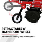 The premium rubber tread wheel can quickly be shifted underneath for easy transport of the BT-889 garden tiller to wherever you need it.