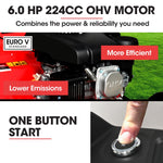 - Powerful 224cc 6.0 hp 4-stroke engine