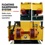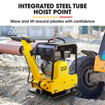 This compacting unit is housed in a reinforced steel frame with a top-mounted hoist point for easy lifting on and off trailers or into trenches. The shock-absorbing handle system with floating bushings minimises vibration, helping reduce fatigue during extended use.