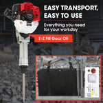 Introducing the Baumr-AG JP260 52CC Two-Stroke Jackhammer, the ultimate in portable power. Featuring our 52cc 2-Stroke engine with E-Z Pull recoil start this lightweight powerful engine produces 2.5 HP enough to take on any demolition job.