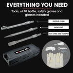 PLUS! This outstanding package also includes 3 BONUS Chisels for Chipping, Tiling and Grooving! All of this arrives in an impact-resistant custom case with safety glasses and gloves included.