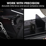 - Precision Cutting +/- 45 degrees with a tool-less mitre fence and mini-vice for accurate repeated cuts