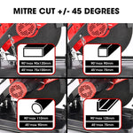 Our saw boasts superior cutting precision with a unique clamping system that minimises wobble and increases accuracy. The vice, enhanced with wave patterns, offers increased friction and clamping tightness. The tool-less adjustment feature allows for quick angle changes from 0-45 degrees to assure accurate repeated cuts.