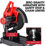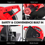 Experience cutting-edge performance with our 14-inch Dry-Cut Chop Saw, designed to keep up with the rigorous demands of modern construction and metalworking. Featuring a high-speed resin composite blade that has enhanced performance. Our saw provides better cuts and reduces the mess associated with traditional saws. This 355mm blade is capable of cutting materials up to a height of 125mm at 90 degrees and 75mm at 45 degrees.