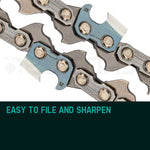 - Easy to file and sharpen deep tooth design