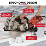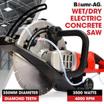 With a robust 3500W copper motor and 350mm diamond blade you’ll experience unparalleled cutting performance effortlessly slicing through concrete, brick, stone, and more.