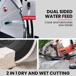 With a measurement gauge you can preset the depth of the 355mm diamond cutting blade to achieve consistent cuts right down to 125mm. Just a few adjustments also allow for horizontal cutting. The CSE-75 is equipped with a Dual Direct Water Feed that coats both sides of the blade for effective cutting, optimal blade life and reducing harmful dust and RCS.