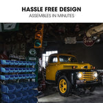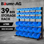 This Baumr-AG Floor Standing Bin Rack makes organising, storing and retrieving loose parts and tools effortless and convenient. This 6-tier Bin Rack is constructed from heavy-duty 20 gauge steel with a durable powder coated finish and sturdy legs. With 39 bins included, it’s ideal for organising tools, hardware and small parts in a home garage, warehouse or workshop.