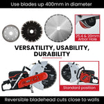 Engineered for wet and dry cutting, the CSP-1000 features a robust 400mm (16") diamond cutting wheel, achieving an impressive cutting depth of 145mm. Its integrated cooling system enhances blade life and performance while minimising dust for a cleaner work environment. The magnesium blade guard adds to its durability, ensuring safe and dependable use under the toughest conditions.
