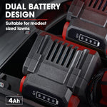 - 2x 20V 4Ah SYNC batteries and dual fast charger included