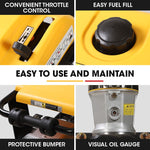 You'll get the job done fast with a large 285 x 345mm shoe that advances at 10-13 metres per minute, plus, the 2.8-litre tank which ensures less frequent refuelling. The high performance engine is protected by a rugged steel tube frame that has a convenient central hook point. User vibration is minimised significantly by heavy duty rubber handle mounts. And that's not all, a bonus transport wheel kit that clips on in seconds is included for easy moving around the job site!