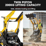 Despite its compact form, the BSR5000 handles up to 200kg lift and 80L operating capacity with the included bucket. Load, lift and dump with confidence. Its high-reach arms are capable of a 2 metre max dump height and 750mm reach, perfect for trailers, skips and landscaping work.