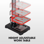 - Height adjustable and 45° angle adjustable work table