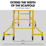This heavy duty outrigger wheel set has a power coated finish, and is fitted with large 5” polyurethane lockable castor wheels that ensure optimal manoeuvrability, without the scuff marks. Execute your work with total peace of mind knowing that the wheels are safely in place thanks to the locking pins. They can also be fitted at a range of 2” height increments to best fit the site.