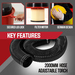 With a powerful 1100W motor, the Baumr-AG Vacuum is highly effective in performing high volume cleaning, and is a far simpler alternative to an entire fixed dust collection system. The rugged yet lightweight design and strong handle ensures portability, and the generous 50L tank allows for extended cleaning periods with less frequent emptying! Just attach the generous 2m flexible hose to your power tools via the universal attachment which has various adaptors for the right fit.